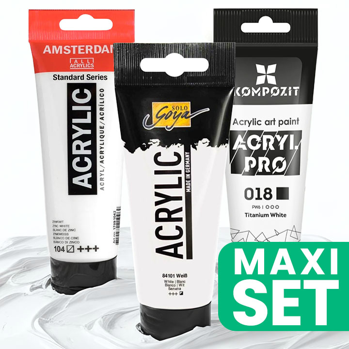 Kezdőlap » Akrilfestékek » Előnyös 3 darabos akril fehér festék készlet