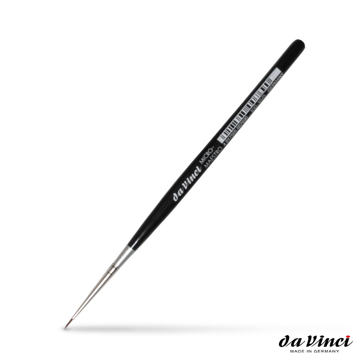 Bemutatjuk csúcsújdonságunkat a nagy hagyományokkal rendelkező ecsetek között. Az elit művészek már évszázadok óta használják a da Vinci ecseteket. Generációk által megbízható minőség! A legfinomabb anyagok optimális felhasználása, a hagyományos kézművesség a technológiai fejlődéssel kombinálva a művészeti márka alapfilozófiája. Ezek az aprólékosan megmunkált ecsetek minden művésznek örömet szereznek. Magas minőségük, precíz megmunkálásuk és tökéletes művészi fedésük miatt pótolhatatlan helyet foglalnak el a képzőművészetben. A professzionális kerek da Vinci Micro-Maestro 100 ecset speciálisan kialakított rövid nyéllel ideális a miniatűr művészeti festményekhez. Finom részletek rajzolására is alkalmas. Különböző méretekben kapható.
