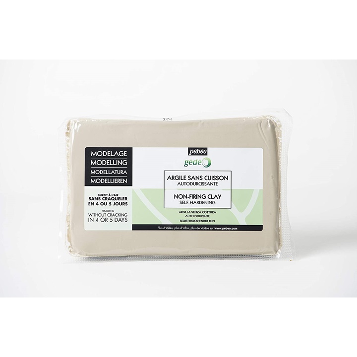 Pebeo Gedeo természetes modellező agyag, amely sütés nélkül keményedik meg, nagy tartósságot, keménységet és szilárdságot biztosítva. Az agyag jellege nagyon jó képlékenységet biztosít a modellezéshez és tökéletes állagot a szobrászathoz és mindenféle alakzat létrehozásához. A természetes cellulózszálak jelenléte lehetővé teszi, hogy nagyobb felületeken is repedésmentesen száradjon. Modellezhető és fazekaskorongon forgatható. Az önkeményedő massza ideális a finom részletek kidolgozásához is. Könnyen tisztítható vízzel a kezeken és a ruhákon. Ha teljesen megszáradt, a termék festhető és lakkozható.